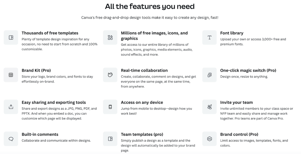 Canva Pro unlocks premium templates, the background remover tool, brand kit functionality, and the ability to resize designs instantly.