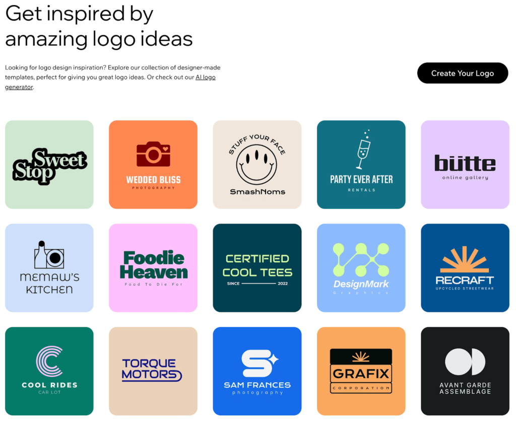 Wix Logo Maker takes a different approach by putting AI at the center of the design process. Instead of browsing through templates, you answer a few questions about your business, style preferences, and design needs. The AI then generates custom logo options tailored specifically for you.