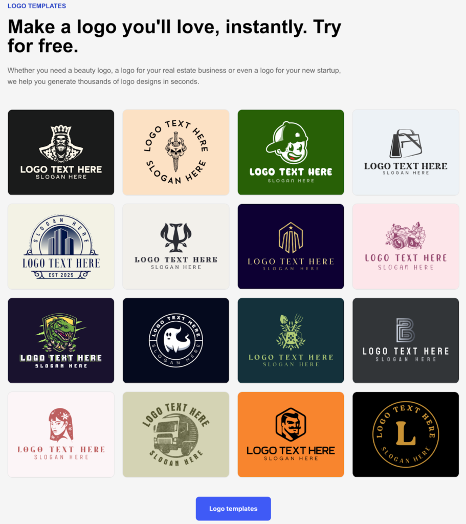 With 350,000+ logo templates created by professional designers, you’ll find high-quality options for virtually any industry. The templates don’t look like generic clip art. They feel modern, polished, and ready to represent your business from day one.