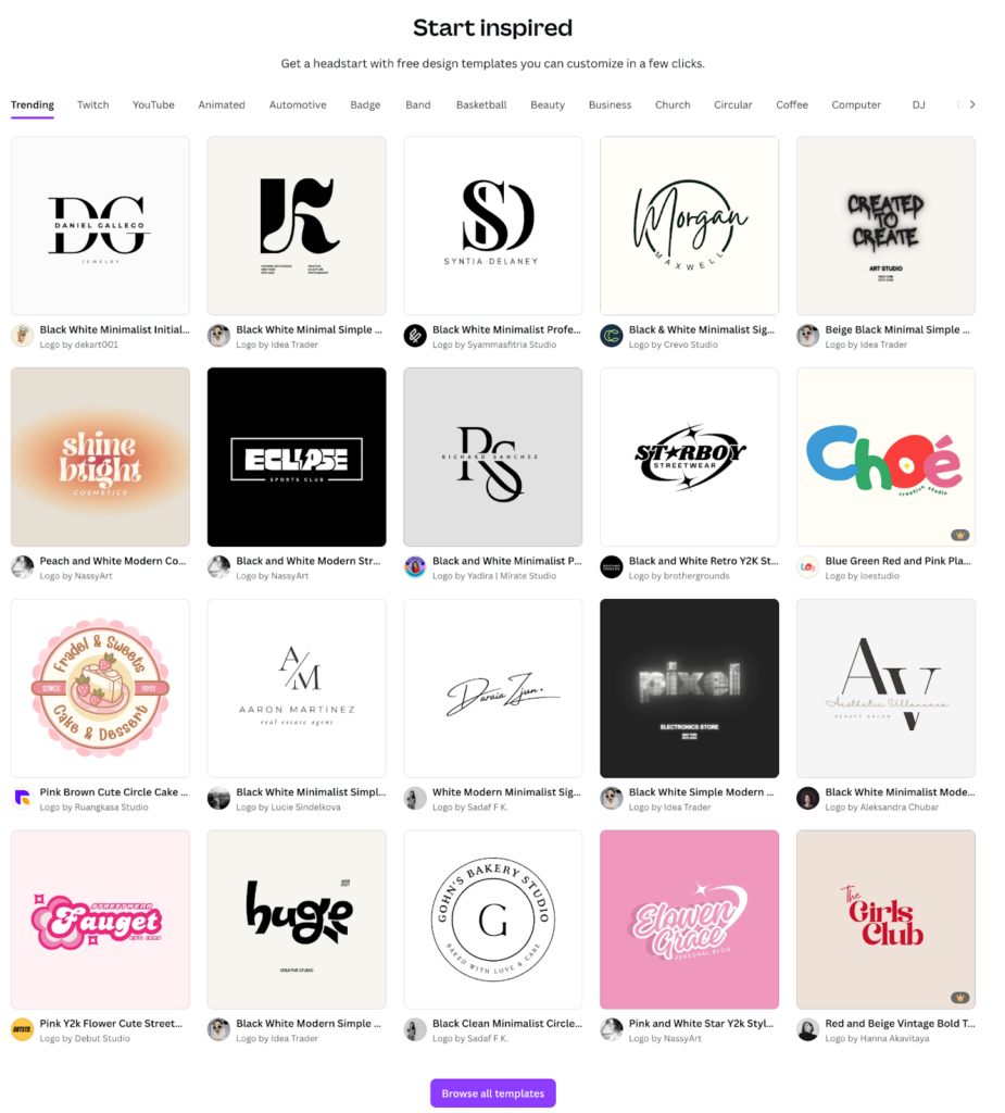 The platform offers thousands of logo templates that you can customize using its famous drag-and-drop editor. Even if you’ve never designed anything before, you’ll find Canva incredibly easy to navigate. The interface is clean, the tools are intuitive, and you can see your changes in real time.